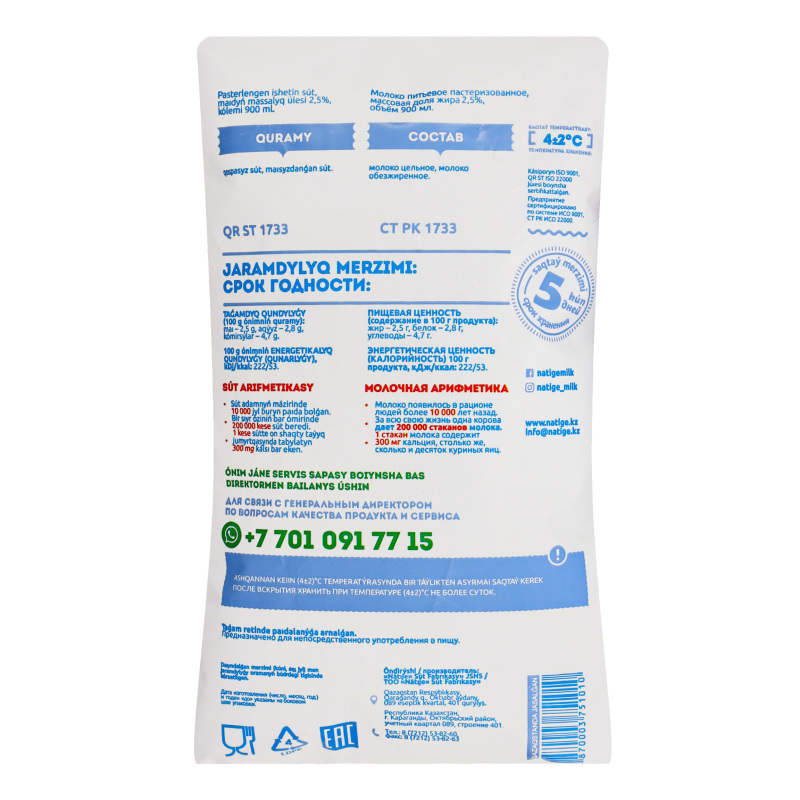 Sút pasterlengen 2.5% Nәtige 900ml |