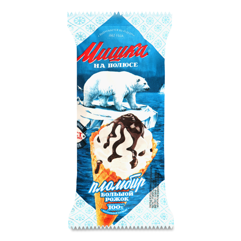 Вафельді мүйізшедегі құйма қосылған ваниль хош иісіті пломбир балмұздағы Мишка на полюсе 110г |