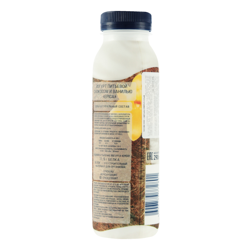 Кокос пен ваниль қосылған ішілетін йогурт 3.6% Epica 290г |