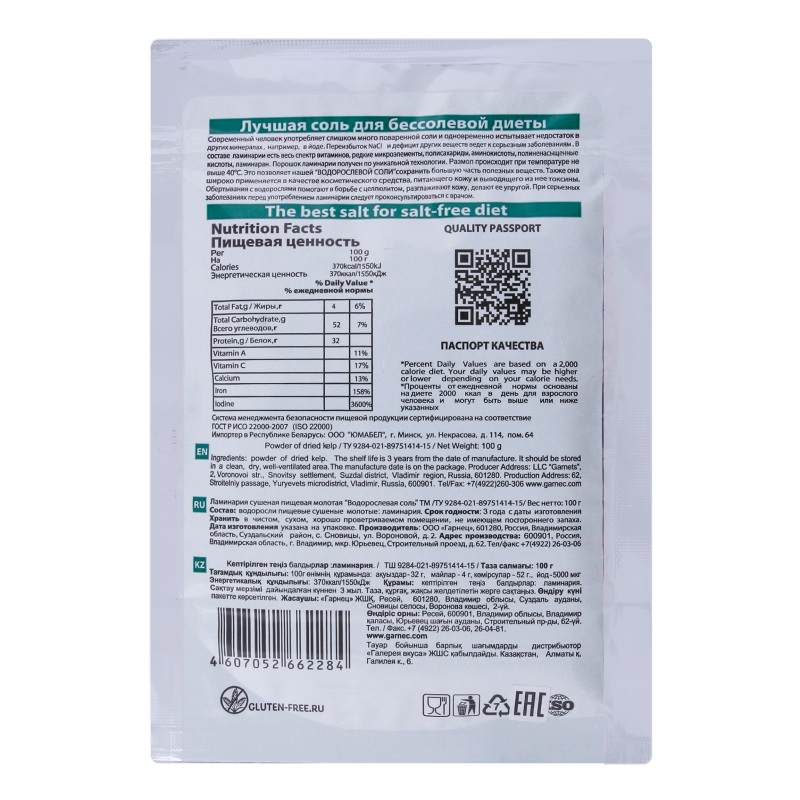 ТЎЗ VEGAN БАЛДЫРЛАР ЛАМИНАРИЯ 100ГР САШЕ |