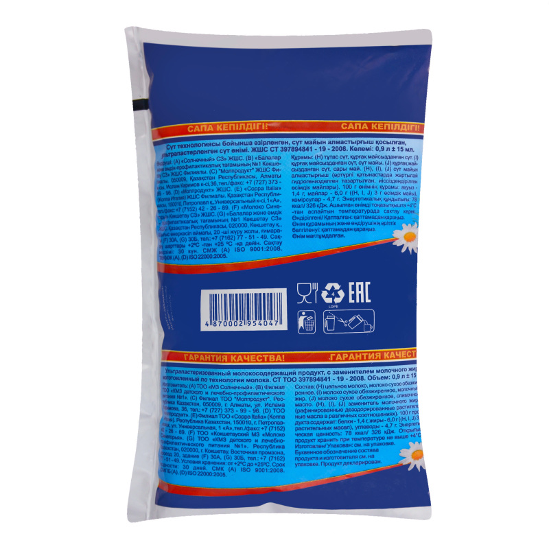 Сүт технологиясы бойынша әзірленген, сүт майын алмастырғыш қосылған, ультрапастерленген сүт өнімі Наше 6% 0.9л |