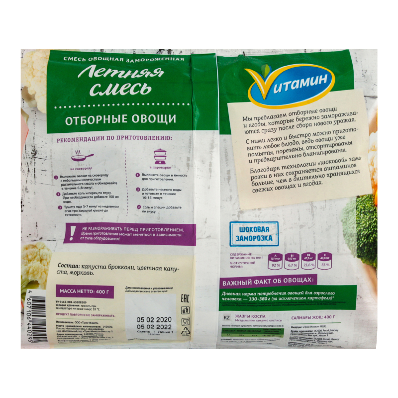 Мұздатылған көкөніс қоспасы Жазгы қоспа Vитамин 400г |